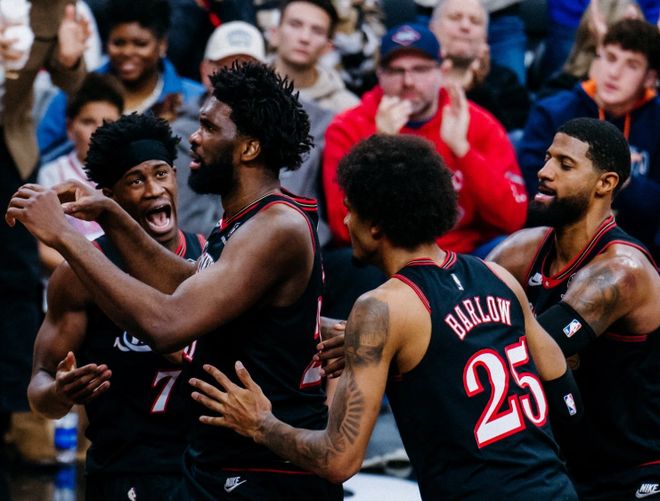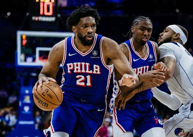 但如果加上恩比德,76人百回合輸對手0.5分。很簡單的道理,如果打快節奏,從馬克西到埃奇庫姆,包括麥凱恩和格萊姆斯,大家都能跑起來,不需要有人強行霸占球權,誰手感好誰就多出手,馬克西也能串聯球隊。但恩比德猶如一根刺,他只要在場,超過三分之一的球權占比,讓球隊陷入停滯。關鍵恩比德是高失誤+嚴重阻礙空間+不愿意沖搶籃板球的典范,換防都跟不上。恩比德出戰的11場比賽,球隊6勝5負,其中有3場都是恩比德休息時大家追回來的。恩比德缺陣的16場比賽,76人10勝6負。