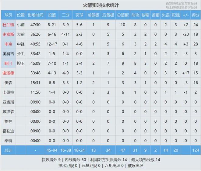 火箭本賽季加時賽戰績1勝4負,凈效率值-19.3!本賽季火箭輸了9場比賽,其中8場輸在關鍵時刻。杜蘭特出戰47分鐘30秒,21投8中,三分9中3,罰球6中5,拿到24分10板8助。伊森本場正式復出,8投6中替補砍下16分3板3助。