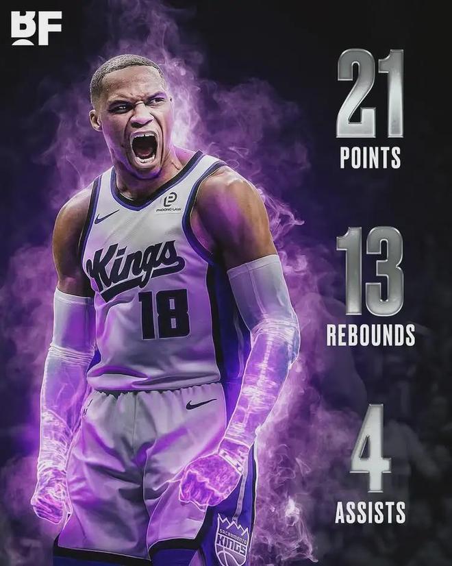 威少24投8中,三分12中5,罰球2中0,得到21分13籃板(6前場)4助攻2搶斷1蓋帽4失誤,正負值+1。第四節最后時刻,威少連砍5分,其中包括絕平三分,幫助國王拖進加時。到了加時賽,威少有一次三分犯規,但是瑕不掩瑜。