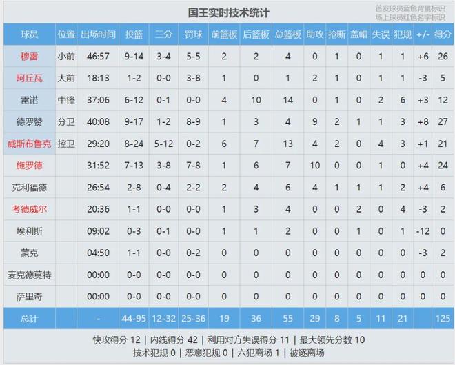 申京17投12中,罰球6中4,空砍28分6板3助2斷2帽4失誤。亞當斯今天沒打,申京的籃板保護還遠遠不夠。國王菜鳥中鋒雷諾,今天砍下12分14個籃板。威少賽后說道:“我們怎么贏的不重要,重要的是我們贏了!”最后看看數據:
