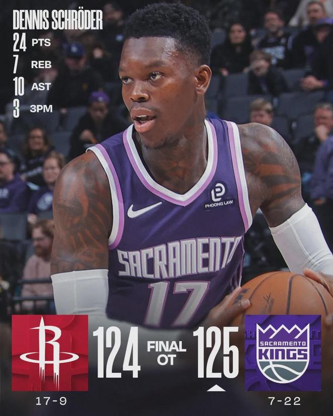 北京時間12月22日下午,剛剛結束的一場NBA常規賽:國王隊主場加時125-124險勝火箭隊。本場比賽之前,國王6勝22負排名西部倒數第一。這是火箭本賽季第二次輸給西部墊底球隊,就在三天之前,火箭慘遭鵜鶘25分大逆轉。